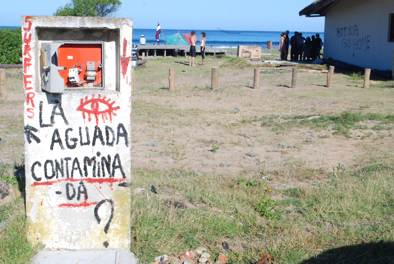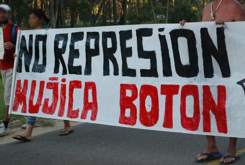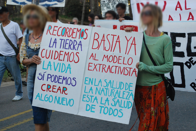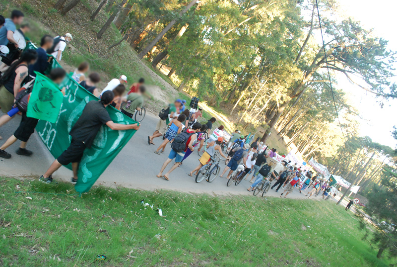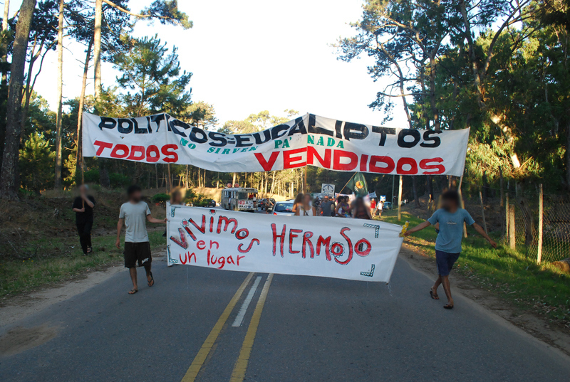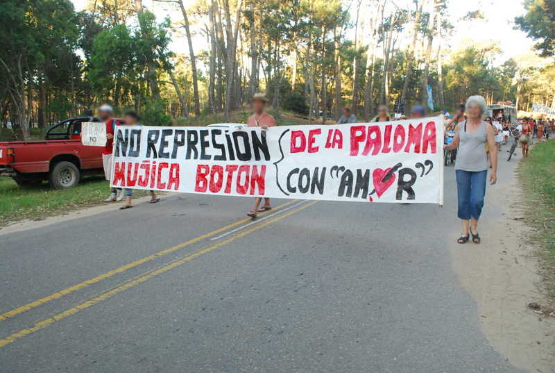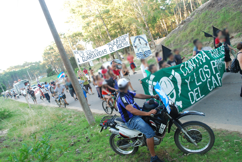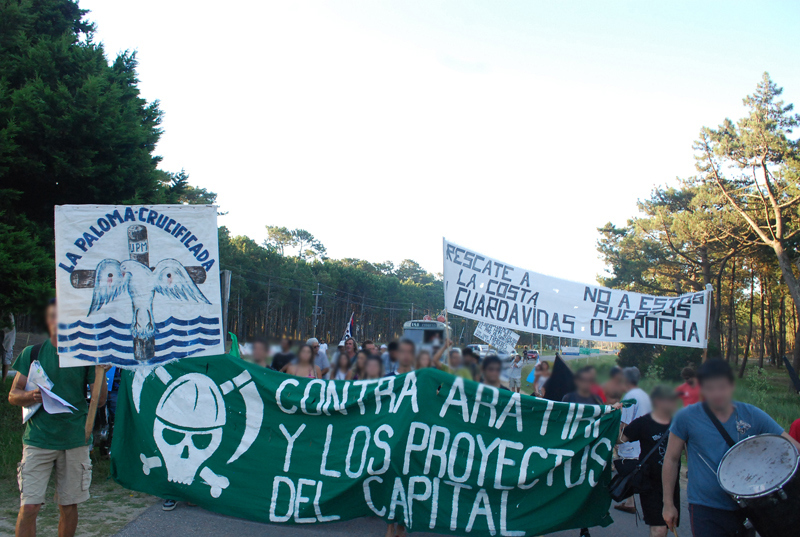 A las siete de la tarde desde la playa de la Aguada partió la marcha contra la terminal maderera y la forestación, recorriendo todo el centro de La Paloma hasta la alcaldía donde diferentes colectivos leyeron sus respectivas proclamas llamando a reforzar la resistencia para detener los megaproyectos que amenazan la Tierra.